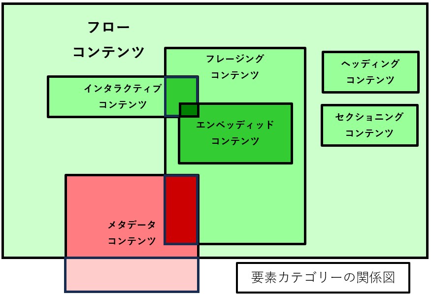 メタデータ・コンテンツの一部の要素は、フロー・コンテンツやフレージングコンテンツにも属する。