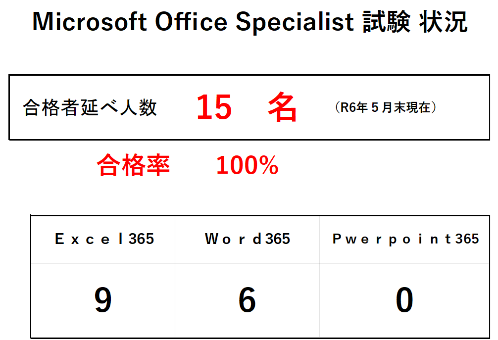 今月のMOS試験状況 パソコン訓練 2024.05.252024.05.27 5月25日にも、MOS試験を実施しました。今回はなんと万点合格です😀すごいですね。これまで、15名が受験し、15名が合格しています。すなわち、合格率100%ということです👍毎日、熱心に取り組んでこられた結果ですね🏅 \ 最新情報をチェック / FacebookXBlueskyHatenaPocketCopy